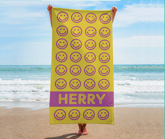 New Happy Smile Personalized Beach Towel Personalized Name Bath Towel Custom Pool Towel Beach Towel With Name Outside Birthday Vacation Gift