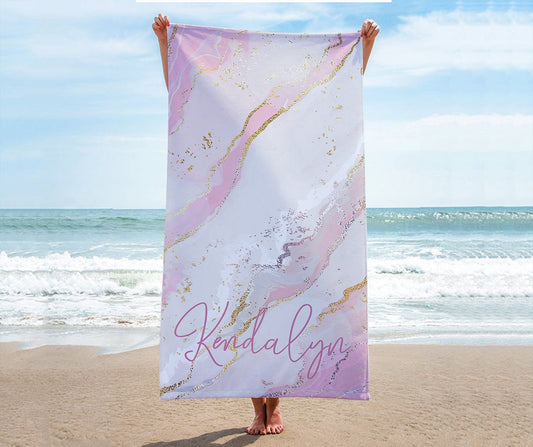 Personalized Glitter Style Beach Towel, Personalized Beach Towel Personalized Name Bath Towel Custom Pool Towel Birthday Vacation Gift