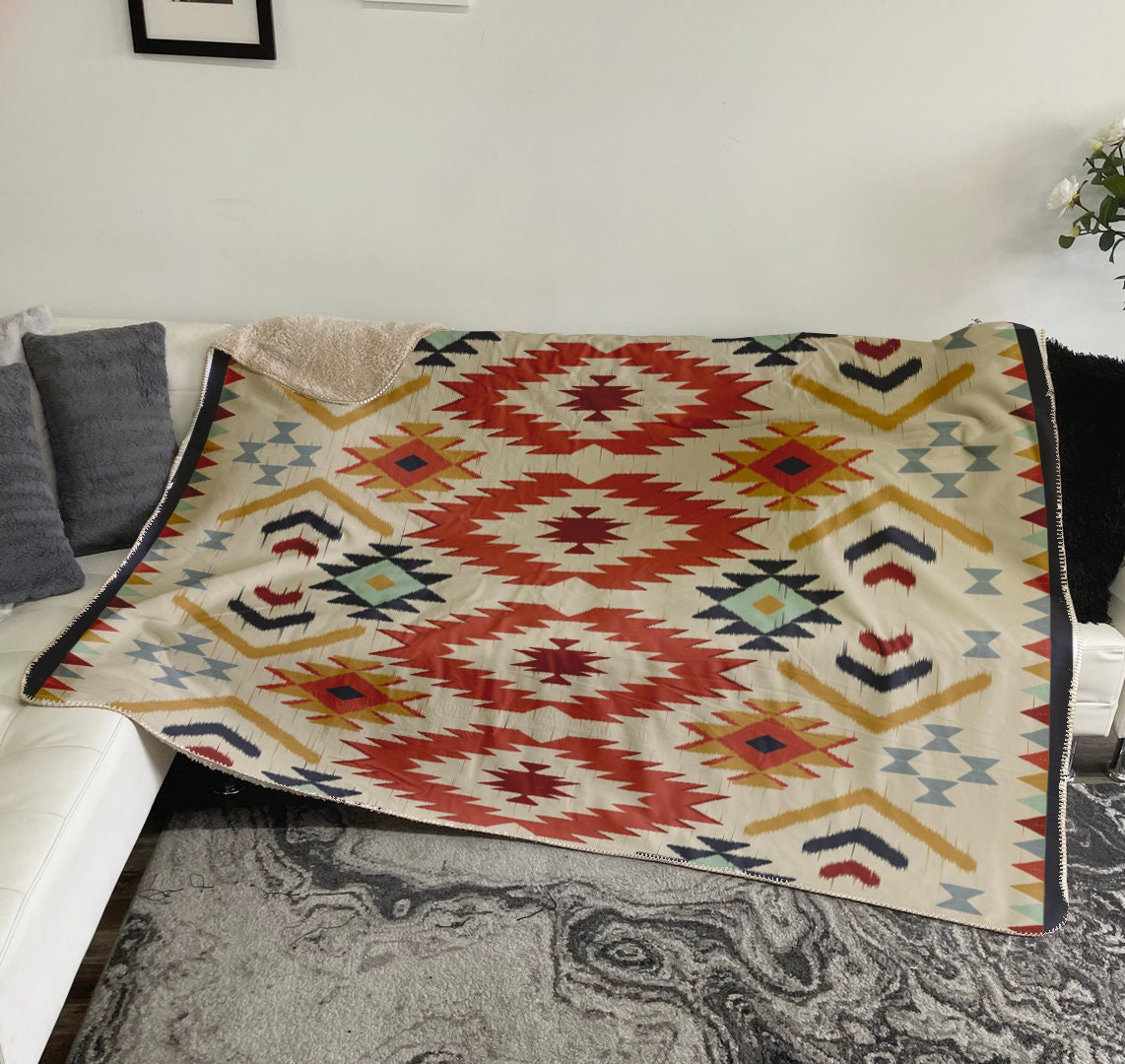 New Aztec geometric art, Ethnic abstract Design Blanket. Seamless pattern in tribal, Mexican style. ornament print Blanket. Our luxuriously soft Fleece or Sherpa Blankets are wonderfully constructed, super-soft and quality made. You have to feel it to believe it! A great gift idea for birthdays and kid's sleepovers. Also makes a perfect snuggie blanket!