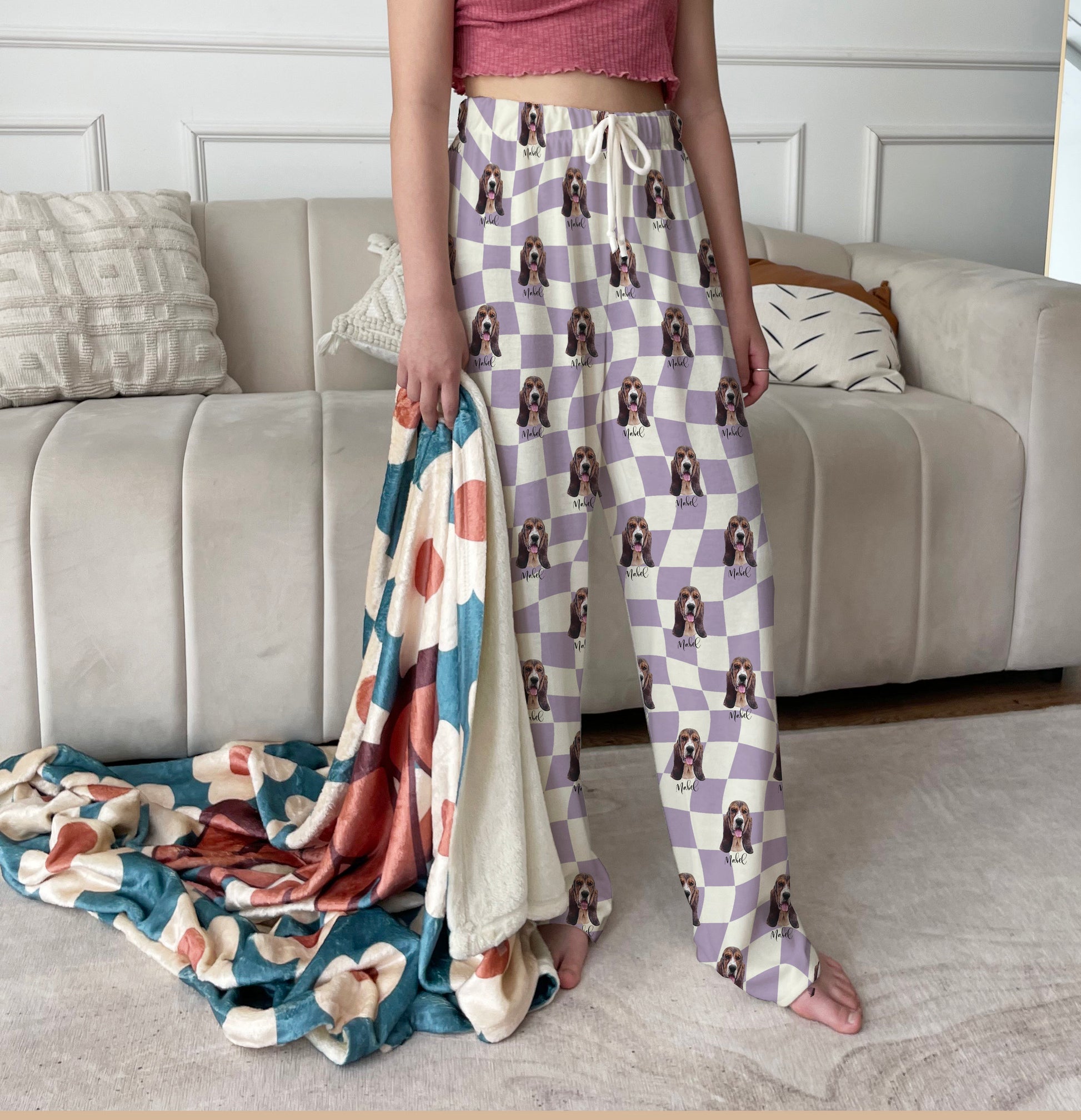Custom Checkered Pet Photo Pajama Pants: Personalized Dog Cat Gift