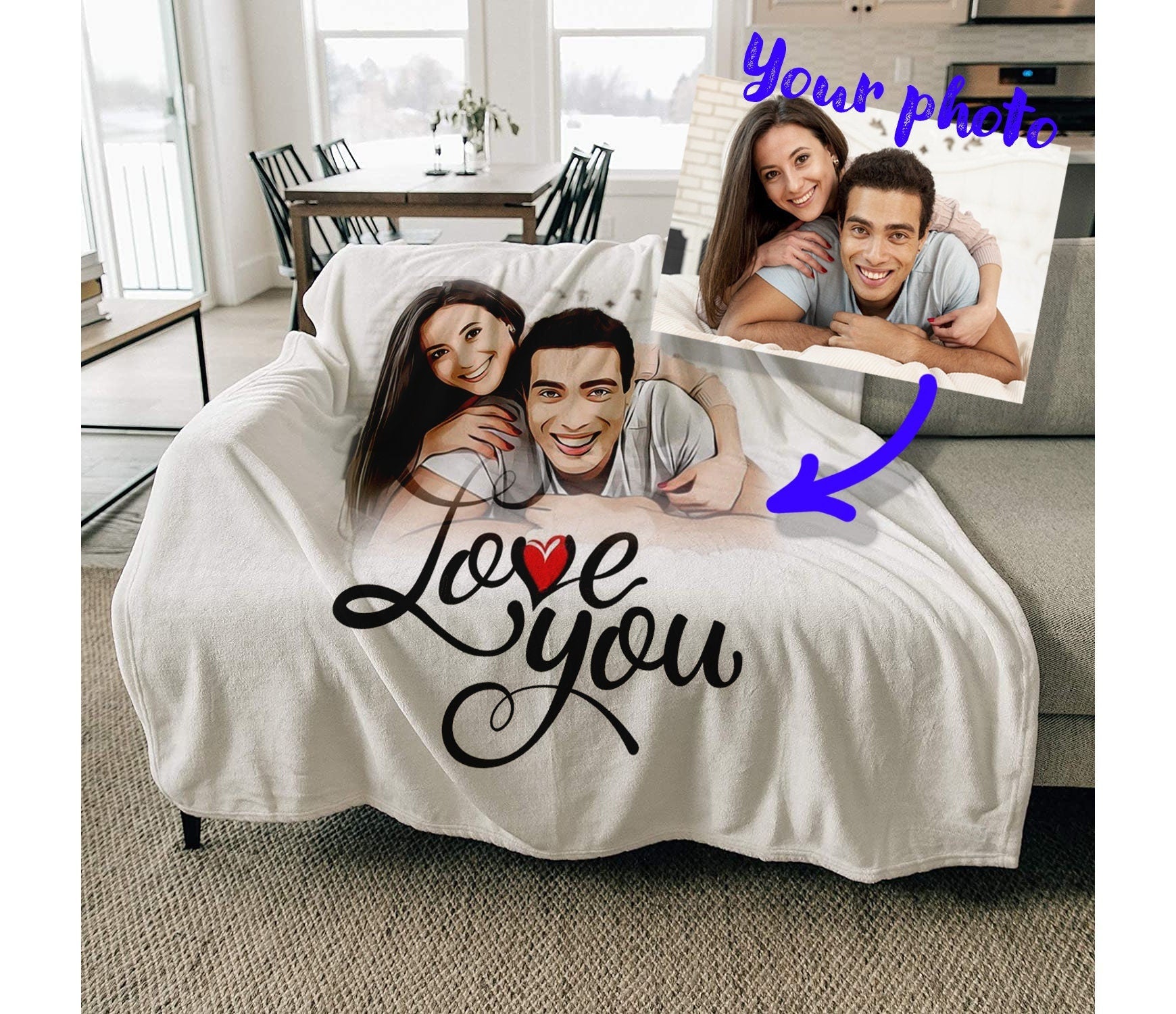Custom Couple Photo Blanket Personalized With A Photo, Comfy Picture Blanket Also Great For Picnics And Beach. Photo Blanket Customized Gift