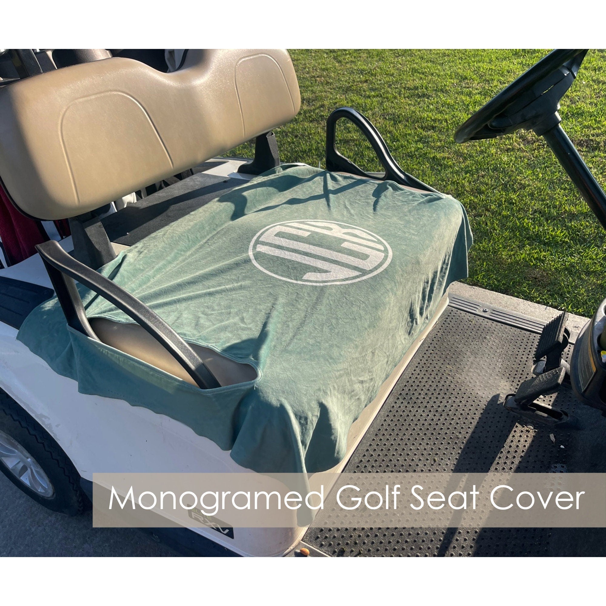 Enhance your golf cart experience with this Custom Monogrammed Golf Cart Seat Cover, crafted from premium cloth that combines durability and comfort as shown in the listing image. Featuring a personalized monogram option and a sleek, fitted design, this seat cover offers superior protection and style, distinguishing it from standard covers.