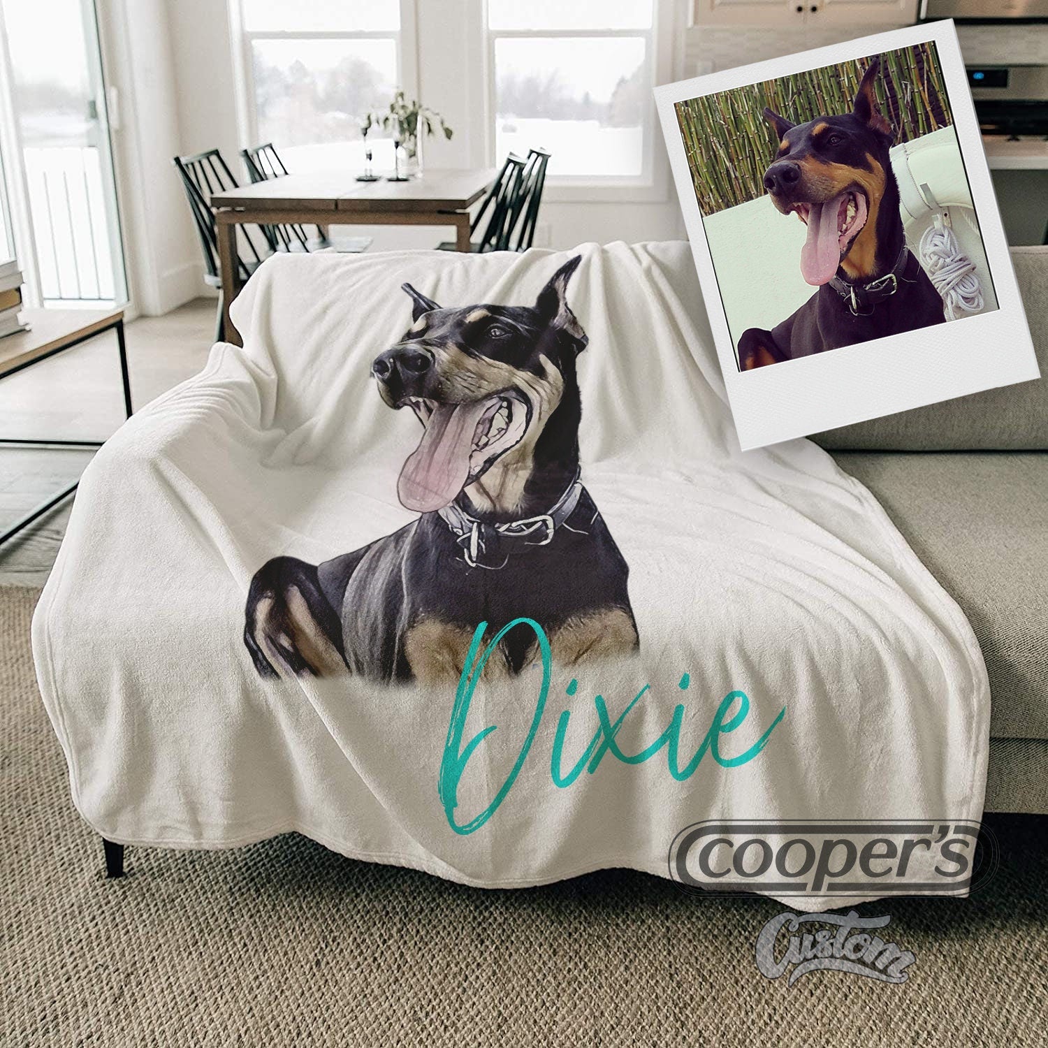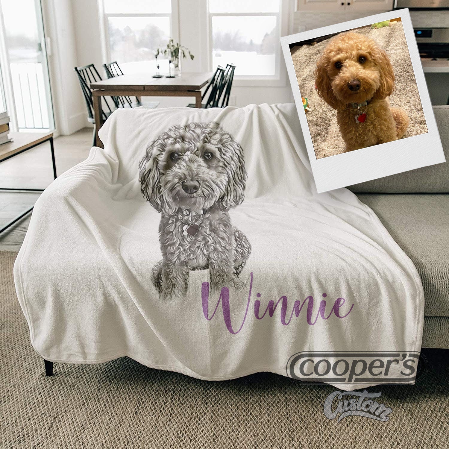 Celebrate the bond between you and your pet with this one of a kind, modern pet portrait blanket that matches... Read more