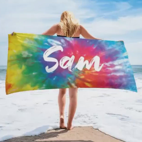 Multi-Color Tie Dye Style Personalized Beach Towel Personalized Name Bath Towel Custom Pool Towel Beach Towel With Name Outside Birthday