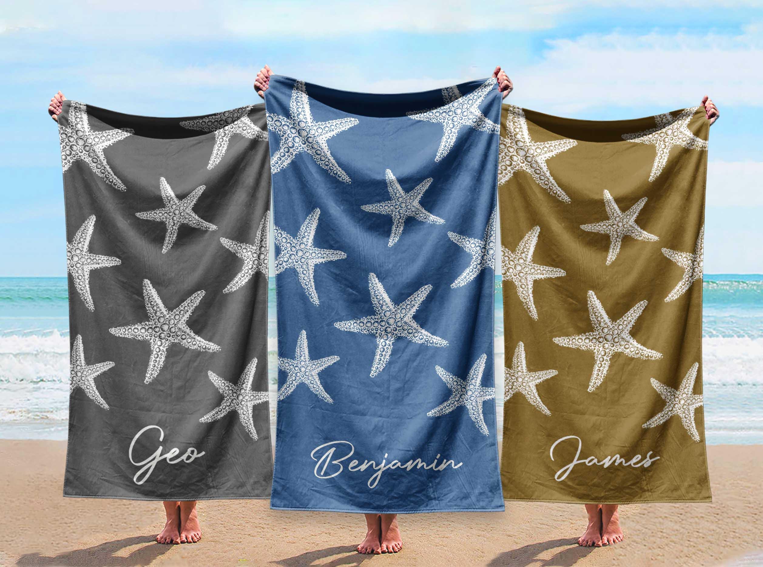 Bring personalized charm to your seaside adventures with this personalized beach towel featuring a delicate starfish pattern and custom name embroidery, as shown in the listing image. Soft, absorbent, and uniquely yours, this towel stands out as a thoughtful gift for birthdays, vacations, or everyday outdoor use.