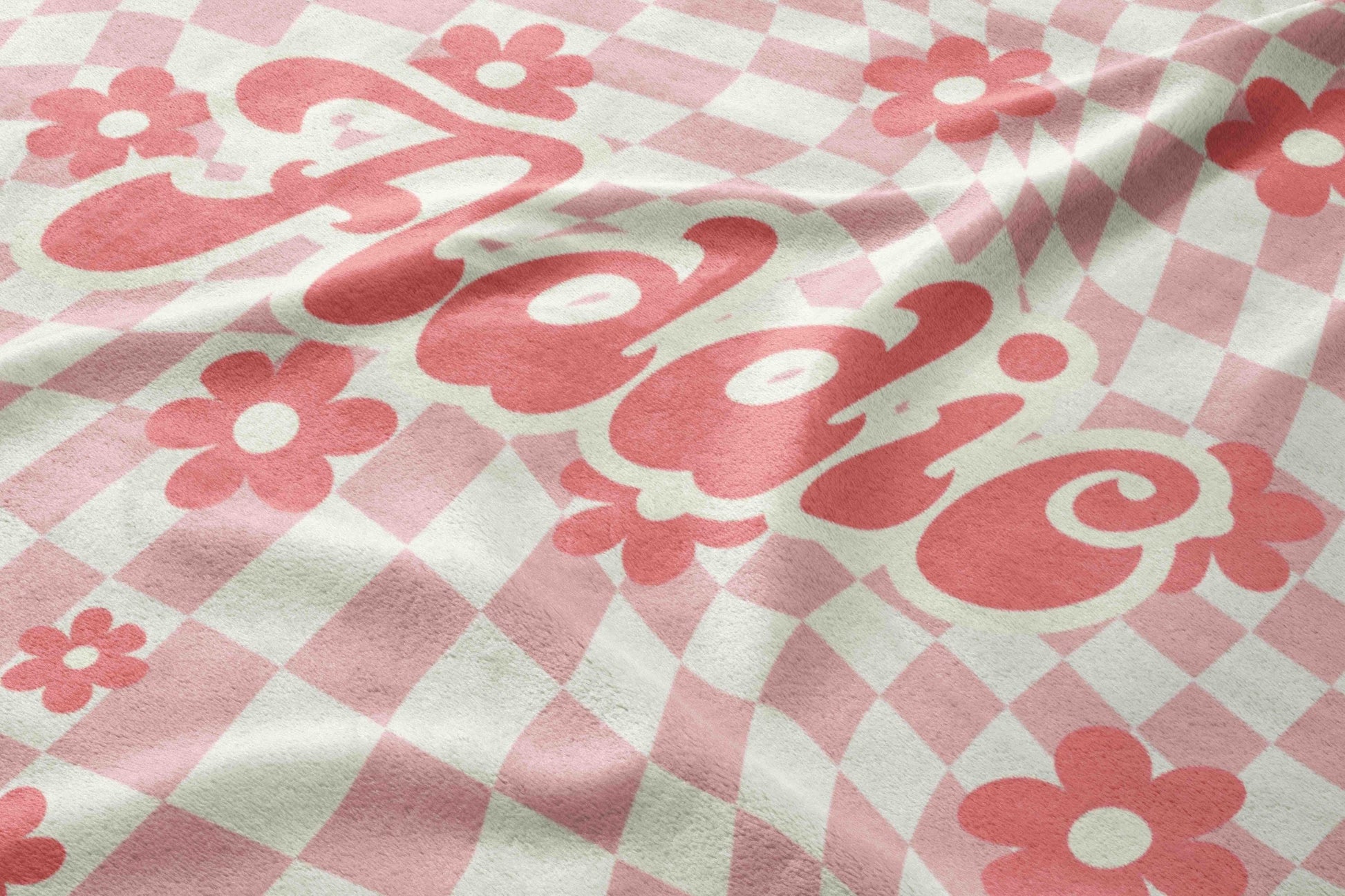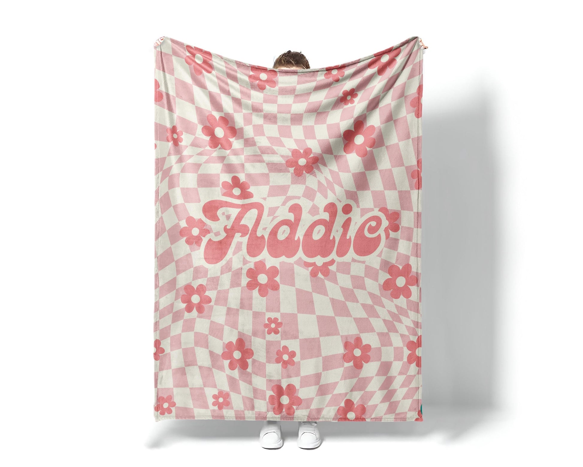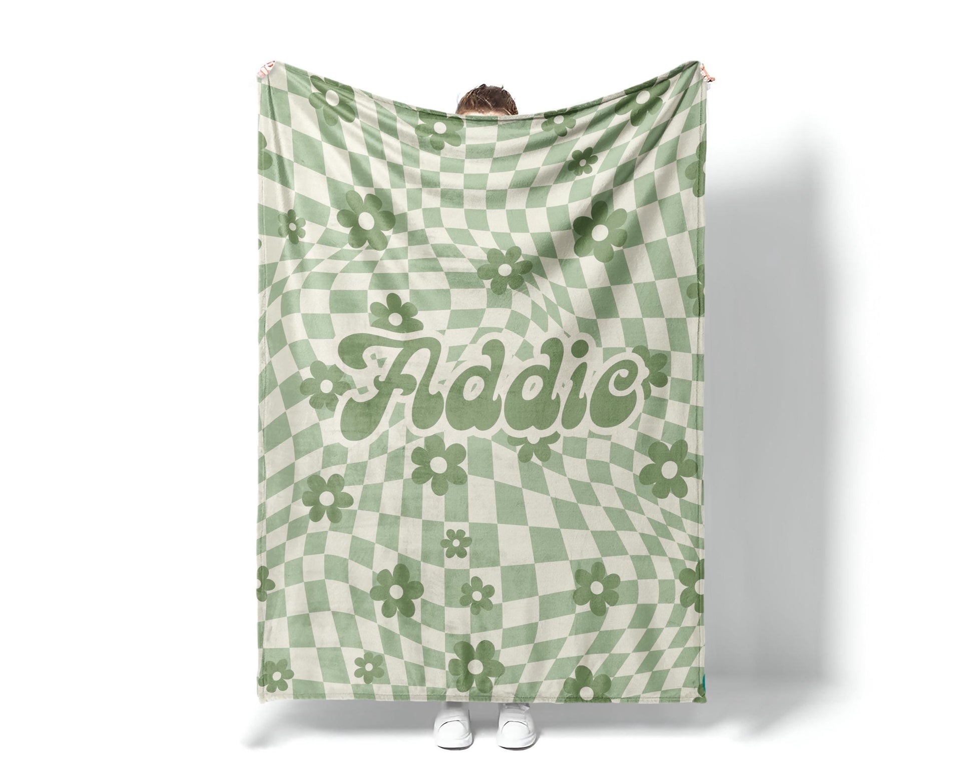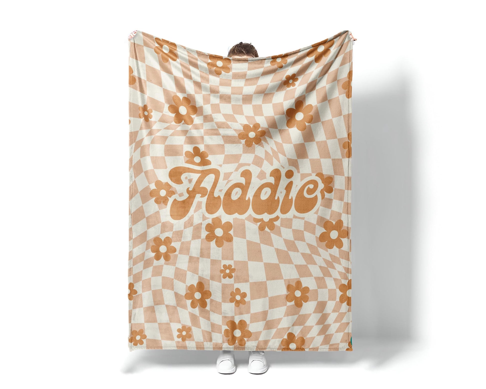 Personalized DAISY CHECKER Pattern in vintage rustic style blanket with Name, Custom blanket gift, Birthday Anniversary Gift