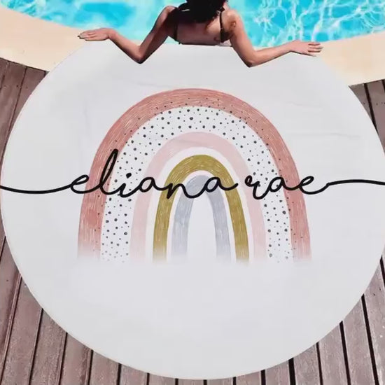 Personalized Rainbow Round Beach Towel, Personalized Beach Towel Personalized Name Bath Towel Custom Pool Towel Birthday Vacation Gift
