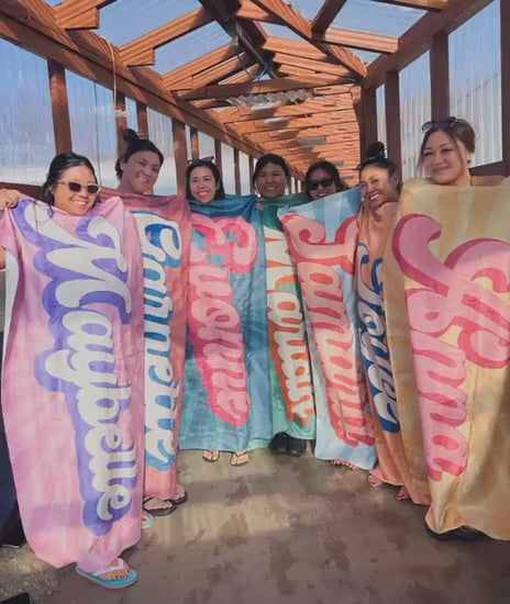 Crafted from soft, absorbent cotton terry cloth, this towel measures a generous 30" x 60", providing ample space for lounging or drying off. The durable fabric offers long-lasting comfort and is easy to care for, machine washable to maintain its vivid colors and plush texture. Ideal for outdoor use at the pool, beach, or lake, it also makes a thoughtful and fun bachelorette gift or summer party favor. Personalization is carefully embroidered for a clean, lasting finish that won't fade or peel. Whether you're seeking a meaningful gift or a vibrant addition to your summer gear, this towel combines style, function, and personality in one.