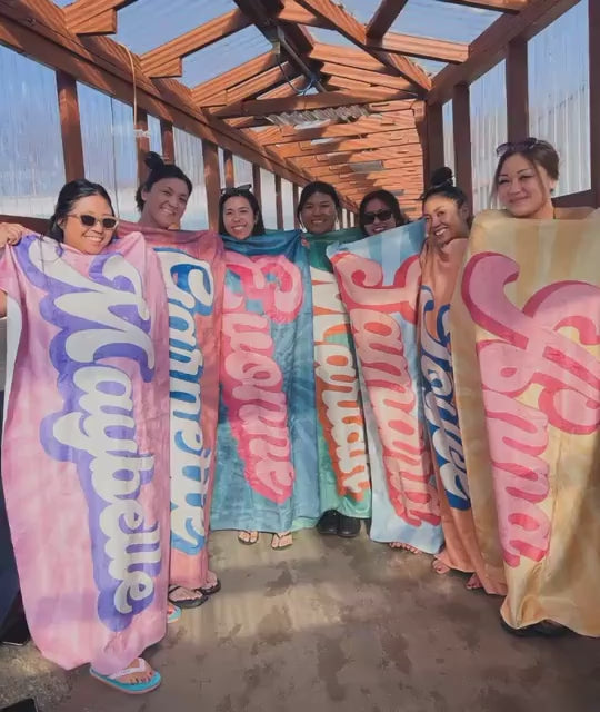 Imagine wrapping yourself in the soft warmth of this retro towel as the sun sets over the water, feeling uniquely yours with your name showcased in iconic 70s style. It's not just about dry skin—it's the joy of owning something that reflects your individuality and elevates your outdoor moments. Bright colors and nostalgic vibes will add a cheerful boost to every adventure, creating memorable experiences where comfort meets cool.