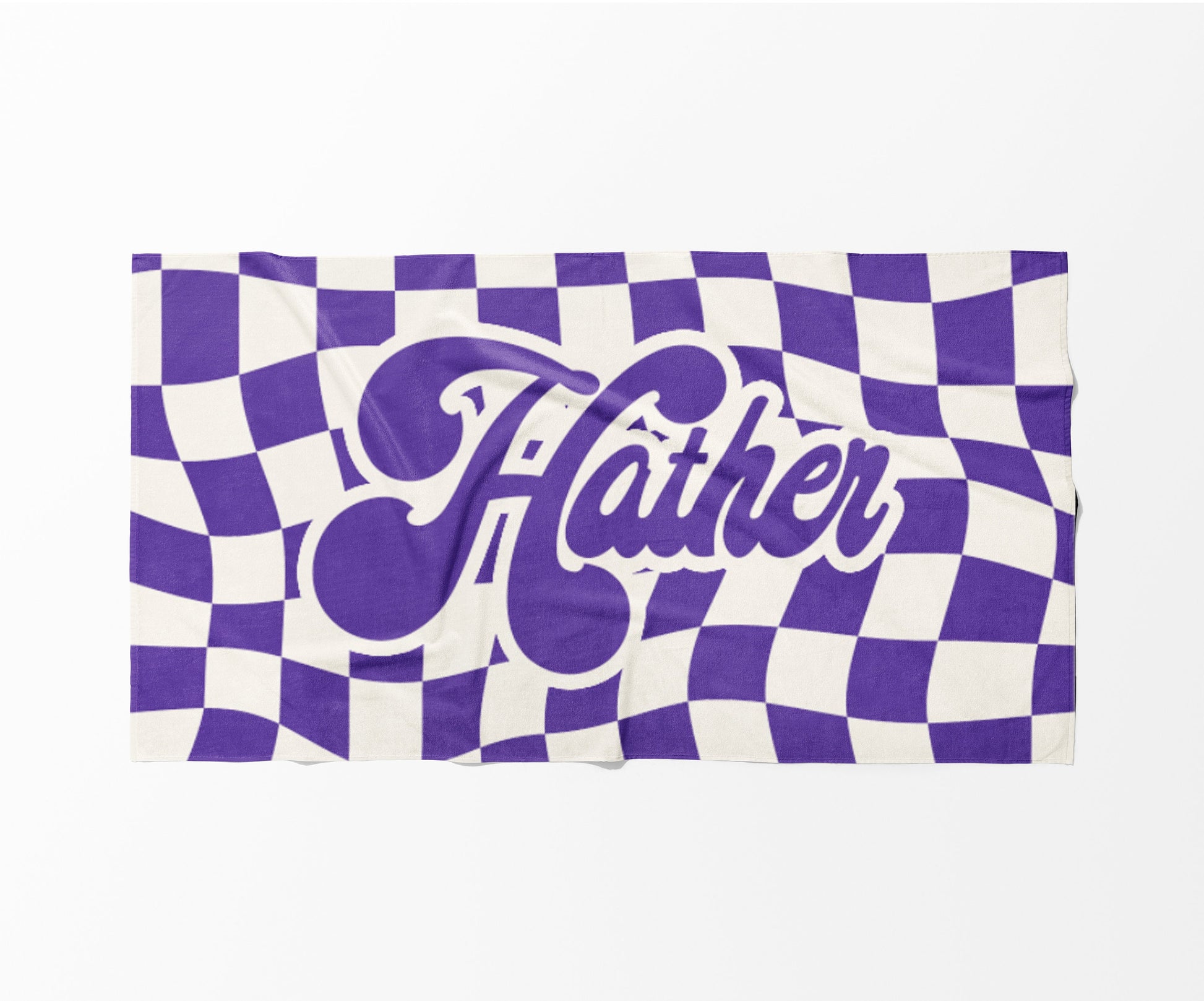 Personalized Vans CHECKER Pattern in Retro style Beach towel with Name, Custom beach towel gift, Birthday Anniversary Gift