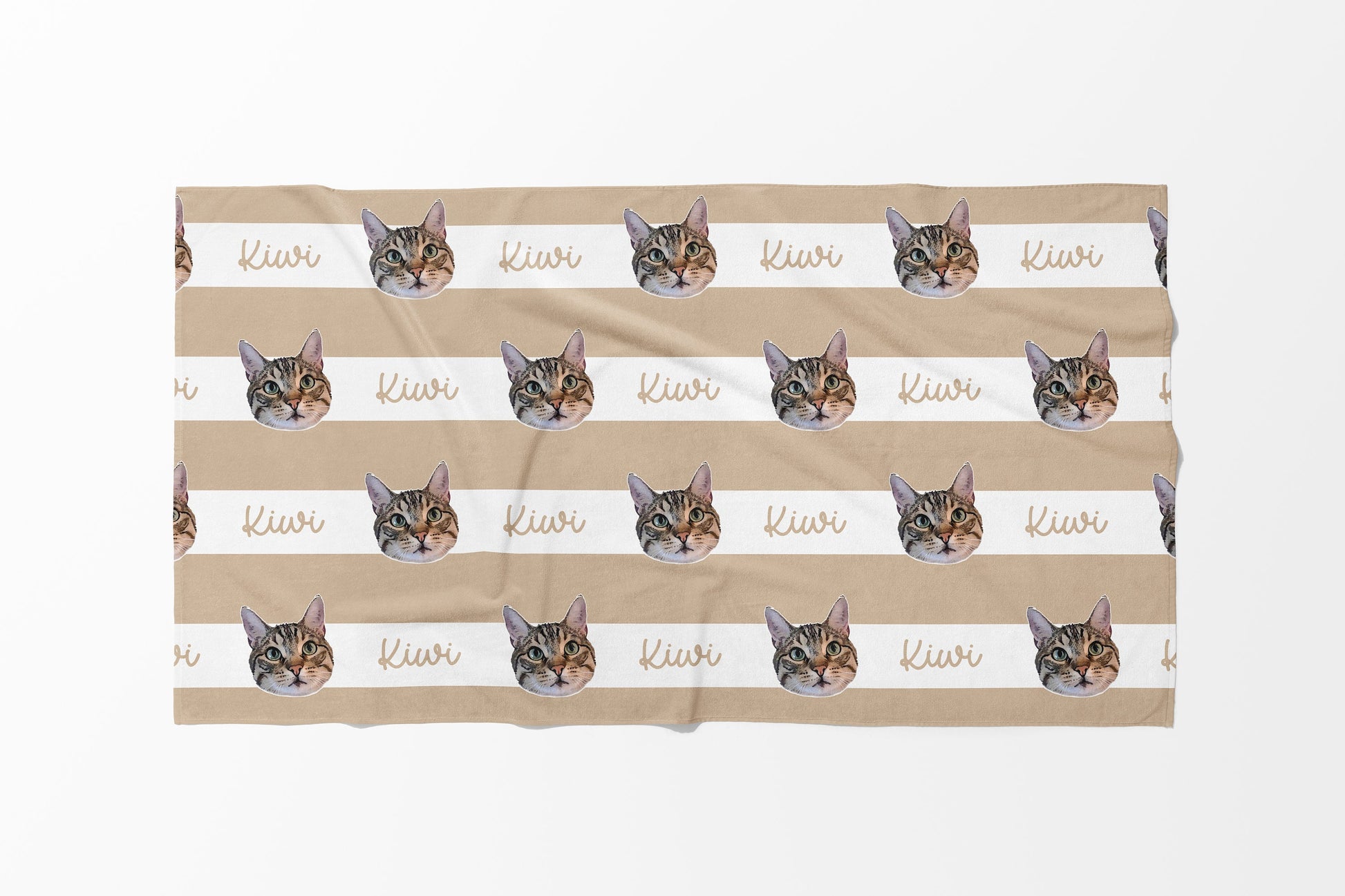Portrait Pet Beach Towel Pet Photo + Name Custom Dog Beach Towel Cat Picture Blanket Pet Photo Customized Gift