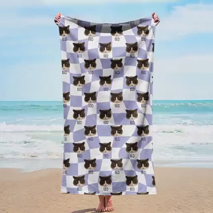 Portrait Pet Beach Towel Pet Photo + Name Custom Dog Beach Towel Cat Picture Blanket Pet Photo Customized Gift