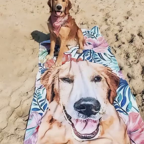 This custom beach towel featuring your best friend will become a statement piece when you go to the beach. This tastefully designed pet beach towel that includes your pet and comes with choice of 12 background design options. Ideal gift for dog lovers, pet sympathy or remembrance gift, and more! Choose between two towel fabric material. Celebrate the bond between you and your pet with this one of a kind, modern pet portrait beach towel.
