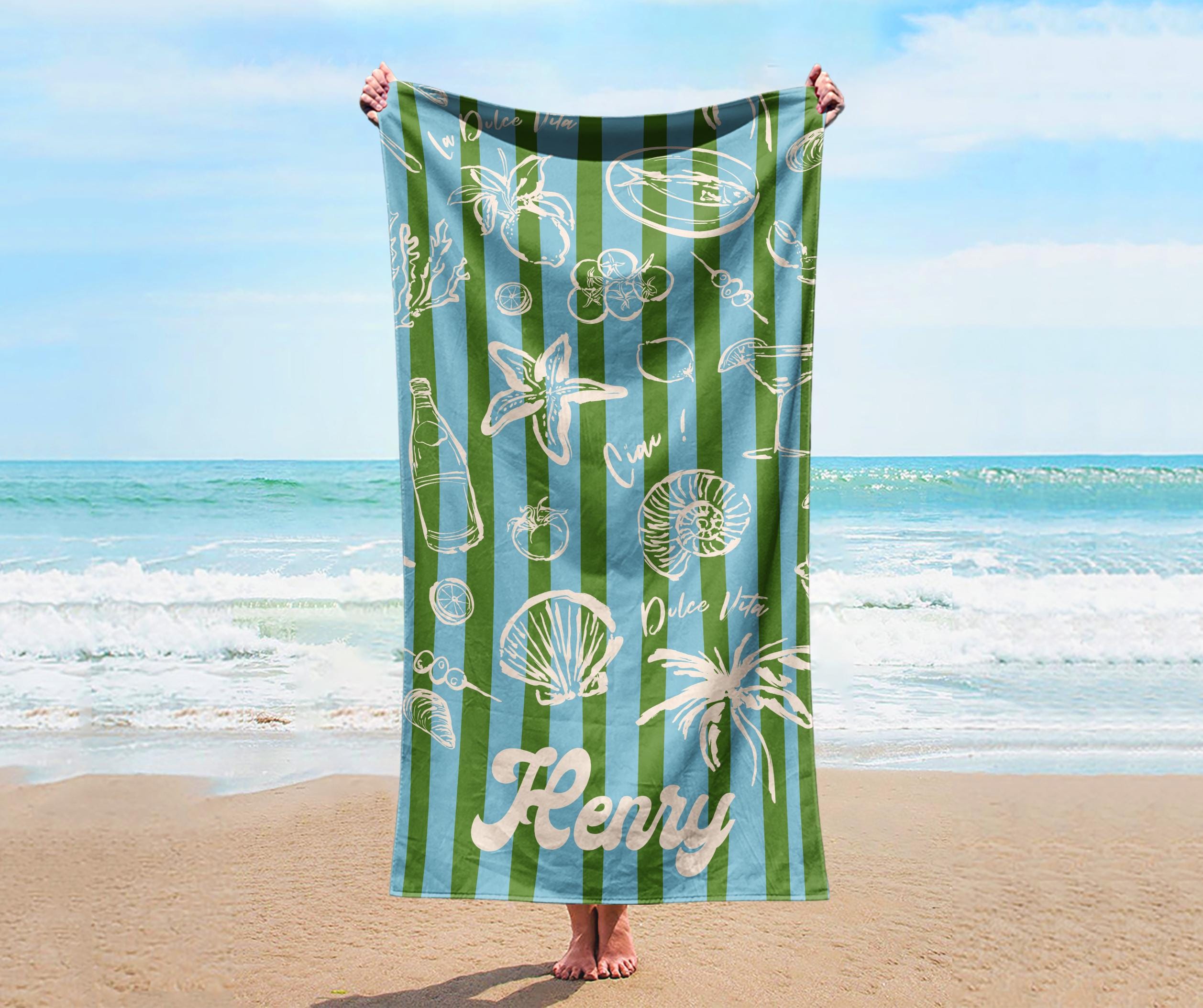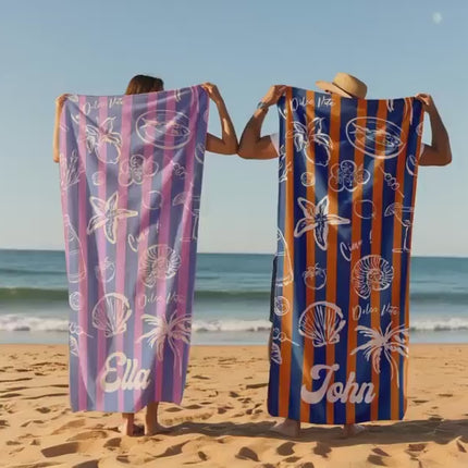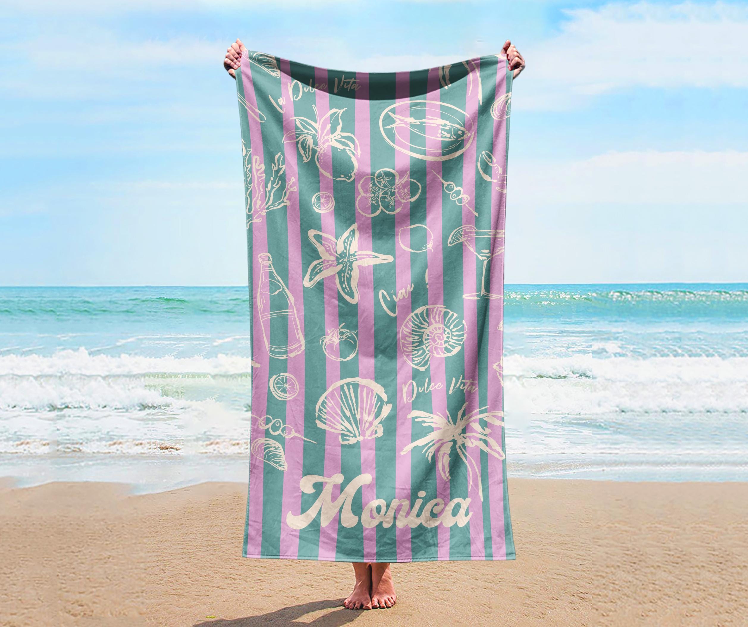 RETRO Stripe Style Personalized Beach Towel Personalized Name Bath Towel, Pool Towel Beach Towel With Name Outside Birthday Vacation Gift