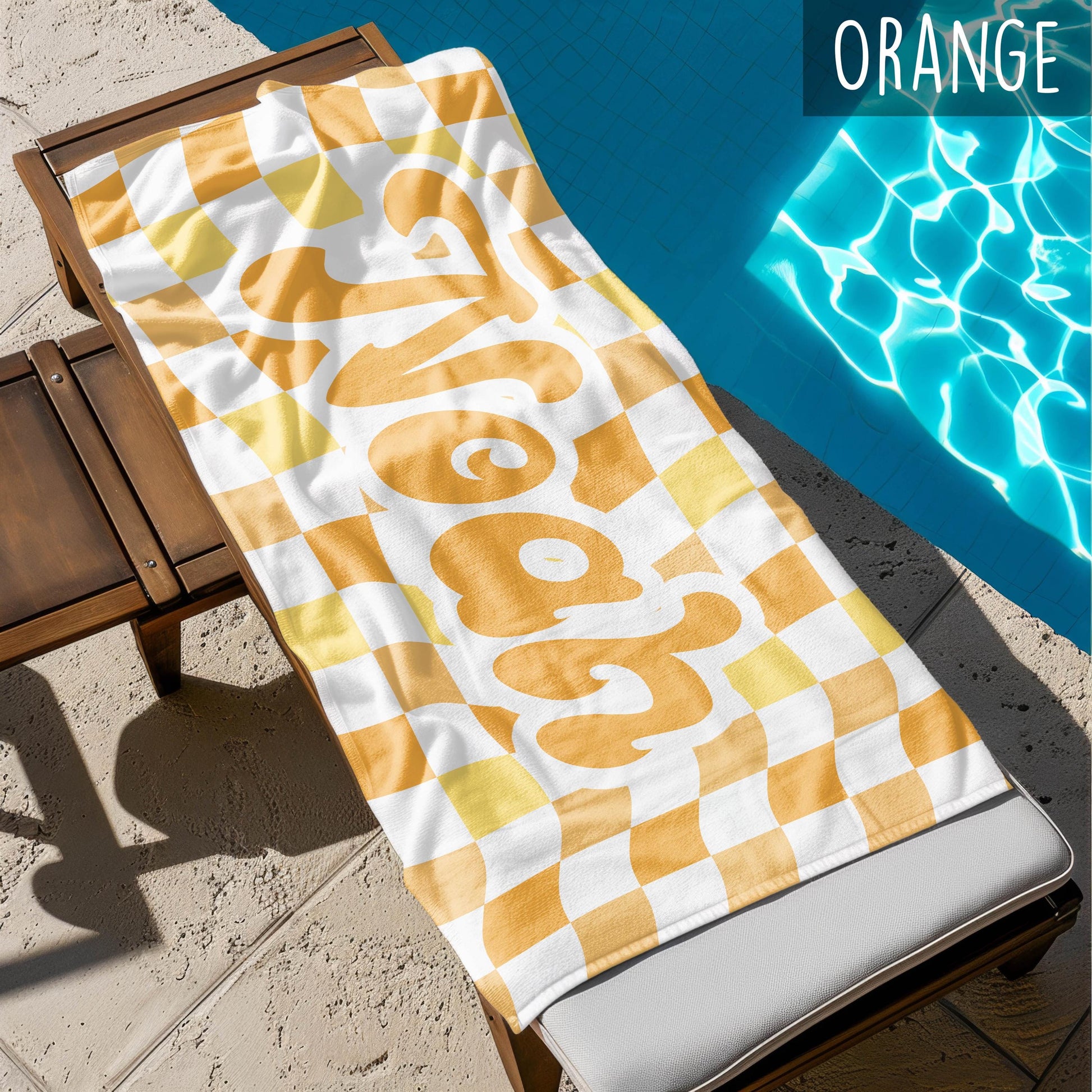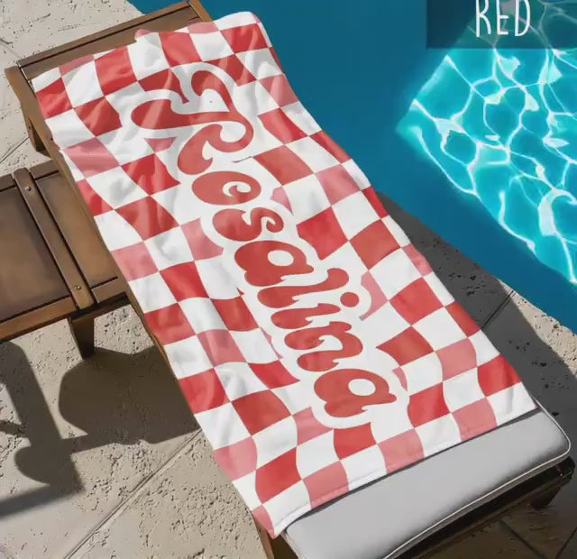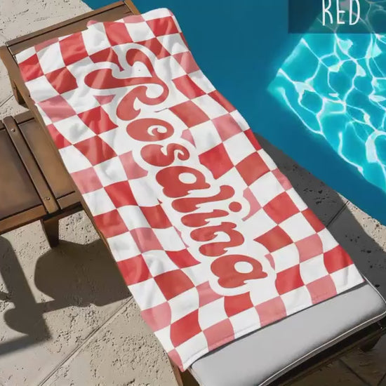 Retro two tone checker personalized gifts, Beach Towel With Name, Birthday Vacation Gift, girl gift