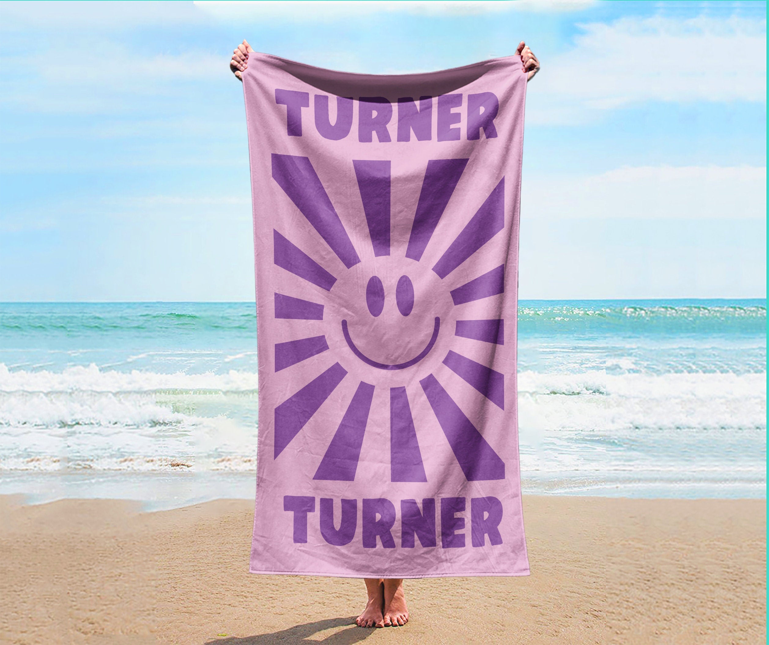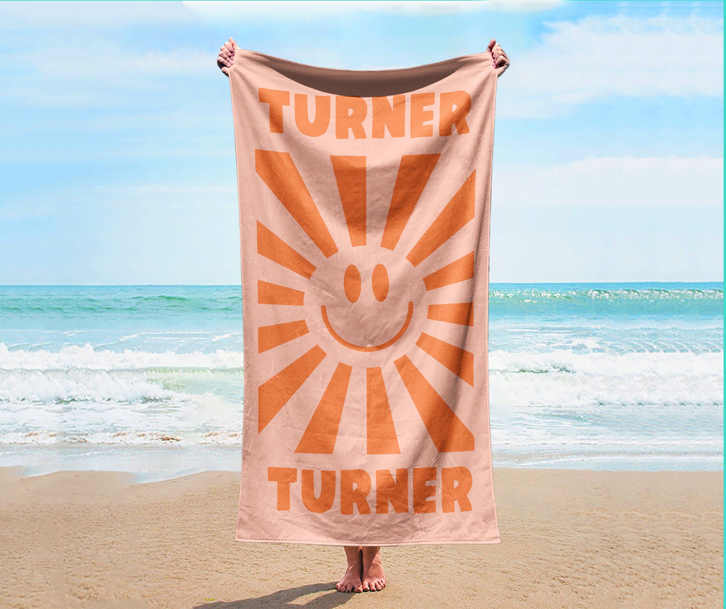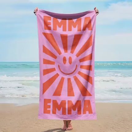 Smile Face Personalized Beach Towel Personalized Name Bath Towel Custom Pool Towel Beach Towel With Name Outside Birthday Vacation Gift